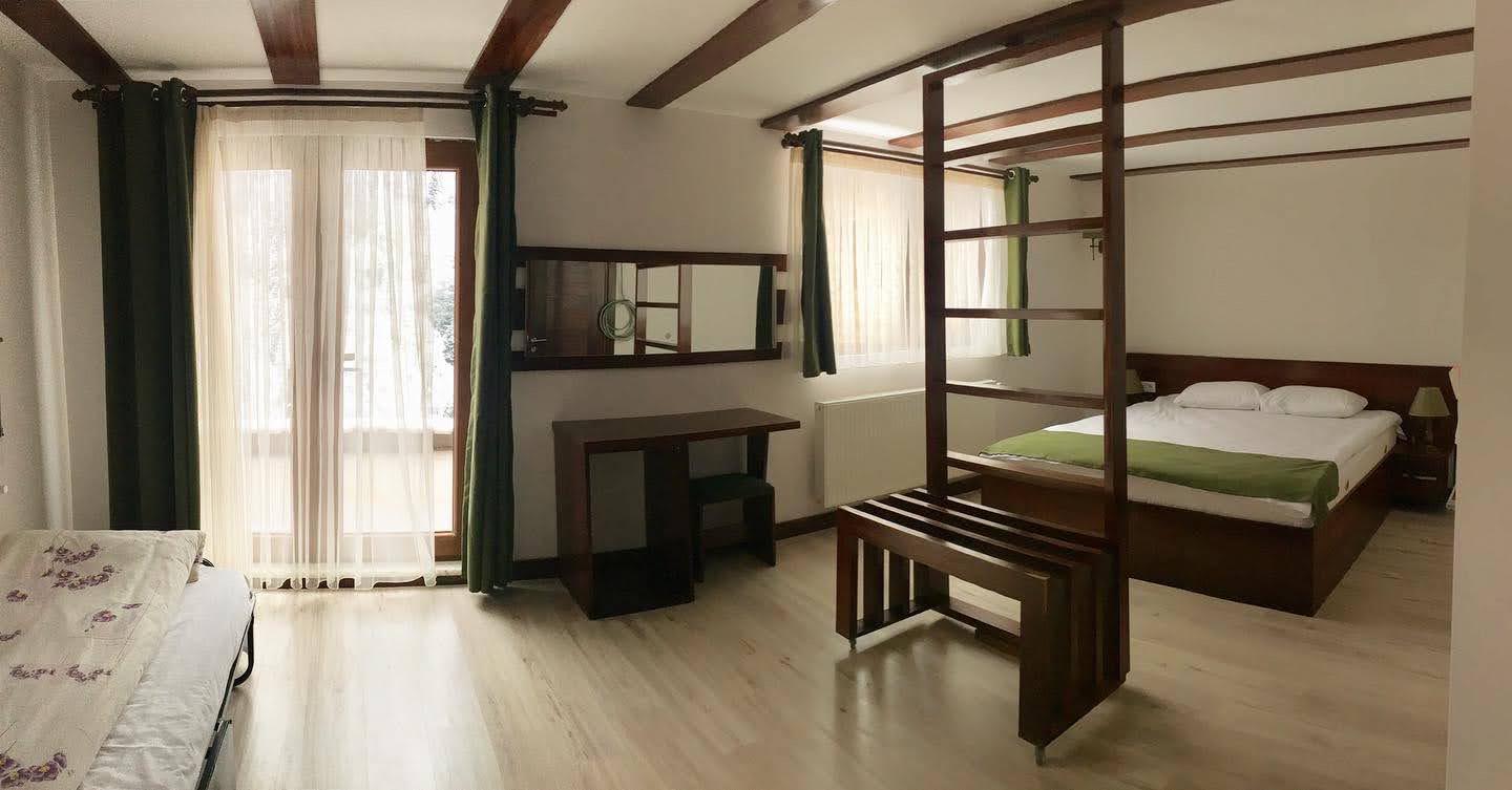 Ahşap bölümde geniş manzaralı odadır. Bir büyük yatak ve bir tek kişilik yatak bulunmaktadır.